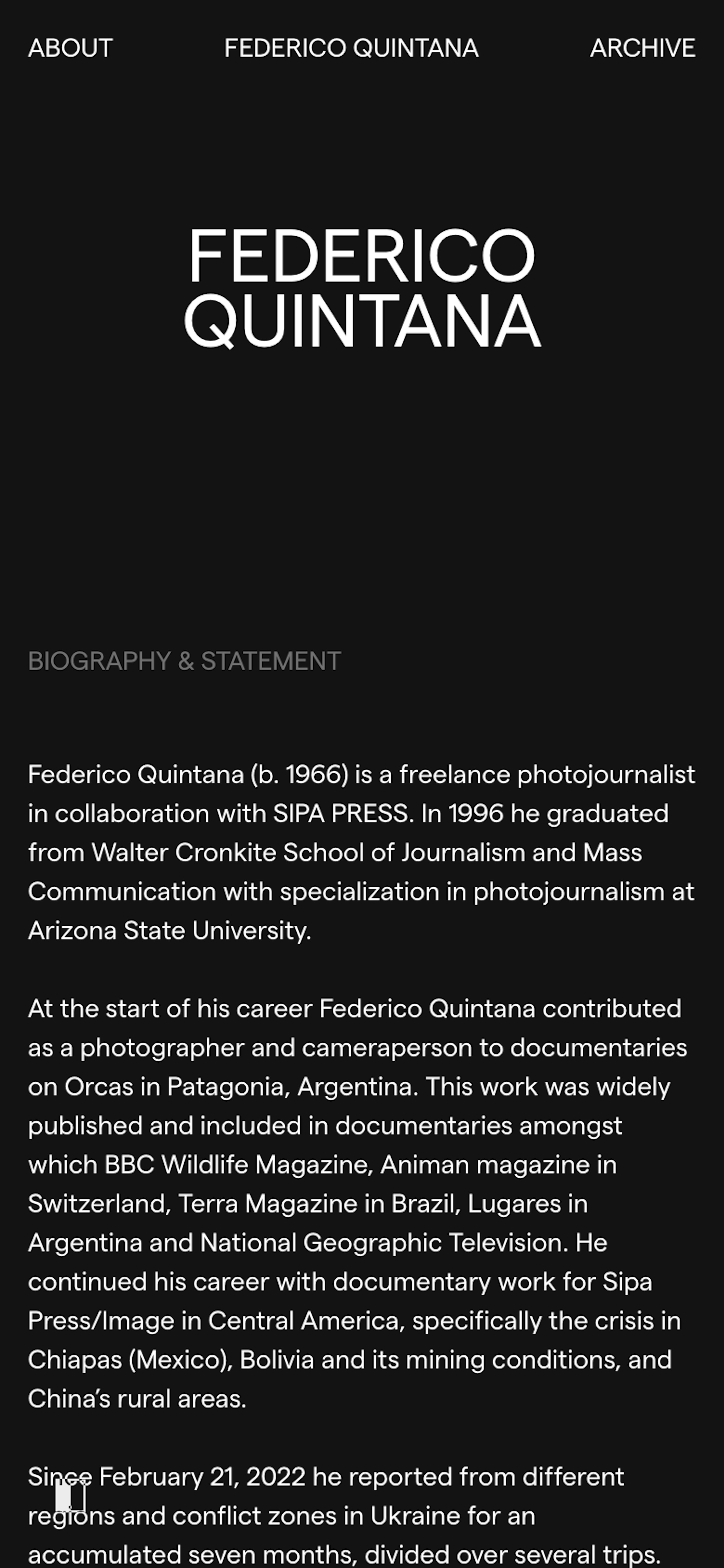 We created a clean online canvas that resembles a photographer’s contact sheet, but with the added digital benefit of multiple browsing modes and a custom CMS, allowing Quintana and his team to update his work and structure stories in multiple ways.