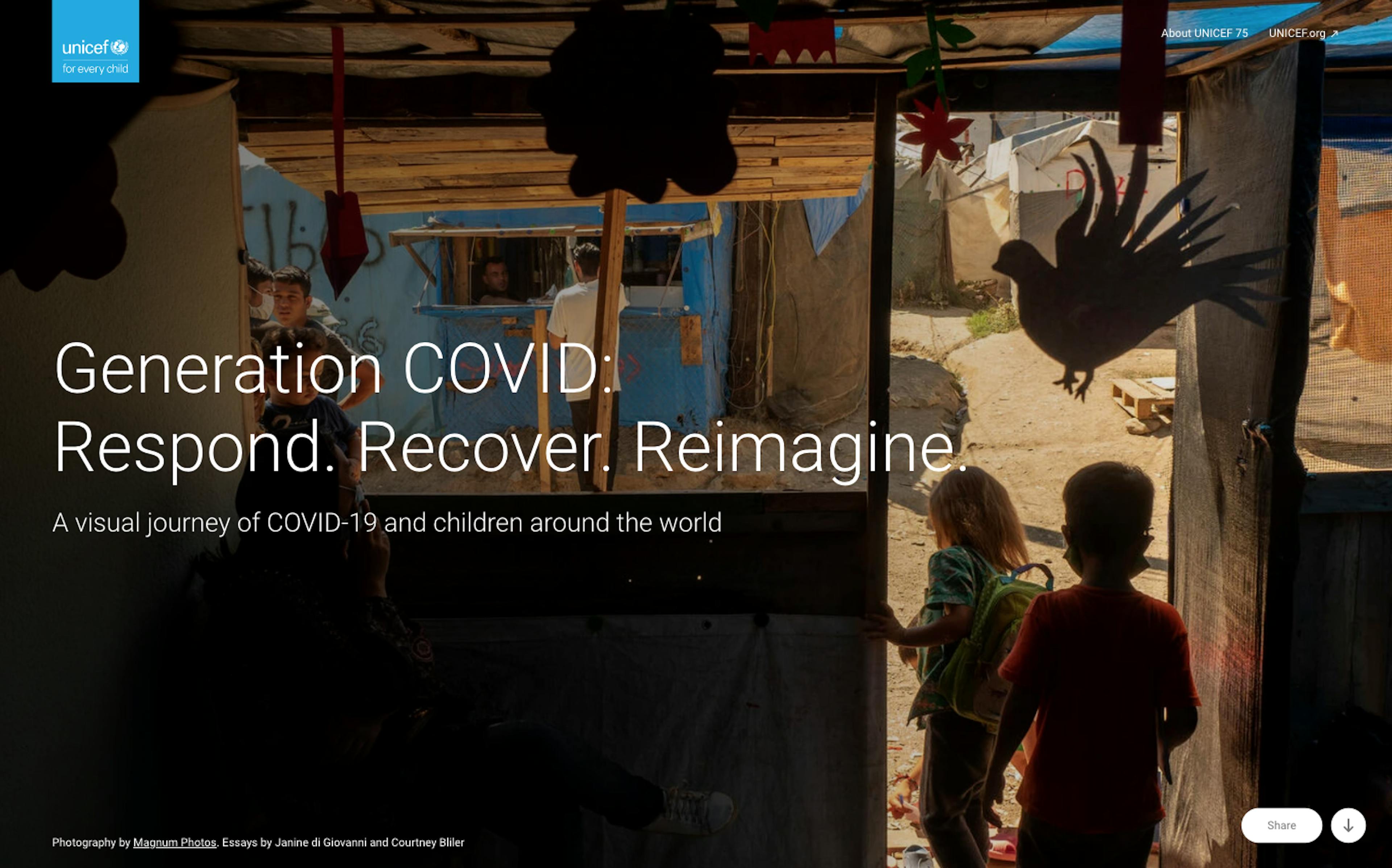 UNICEF works tirelessly for the rights and well-being of every child — whoever they are, wherever they live. As part of the commemoration of its 75th anniversary and in collaboration with the renowned Magnum Photo agency, we designed and built a site that presents an in-depth look at the pandemic experiences of children and young people across six countries.