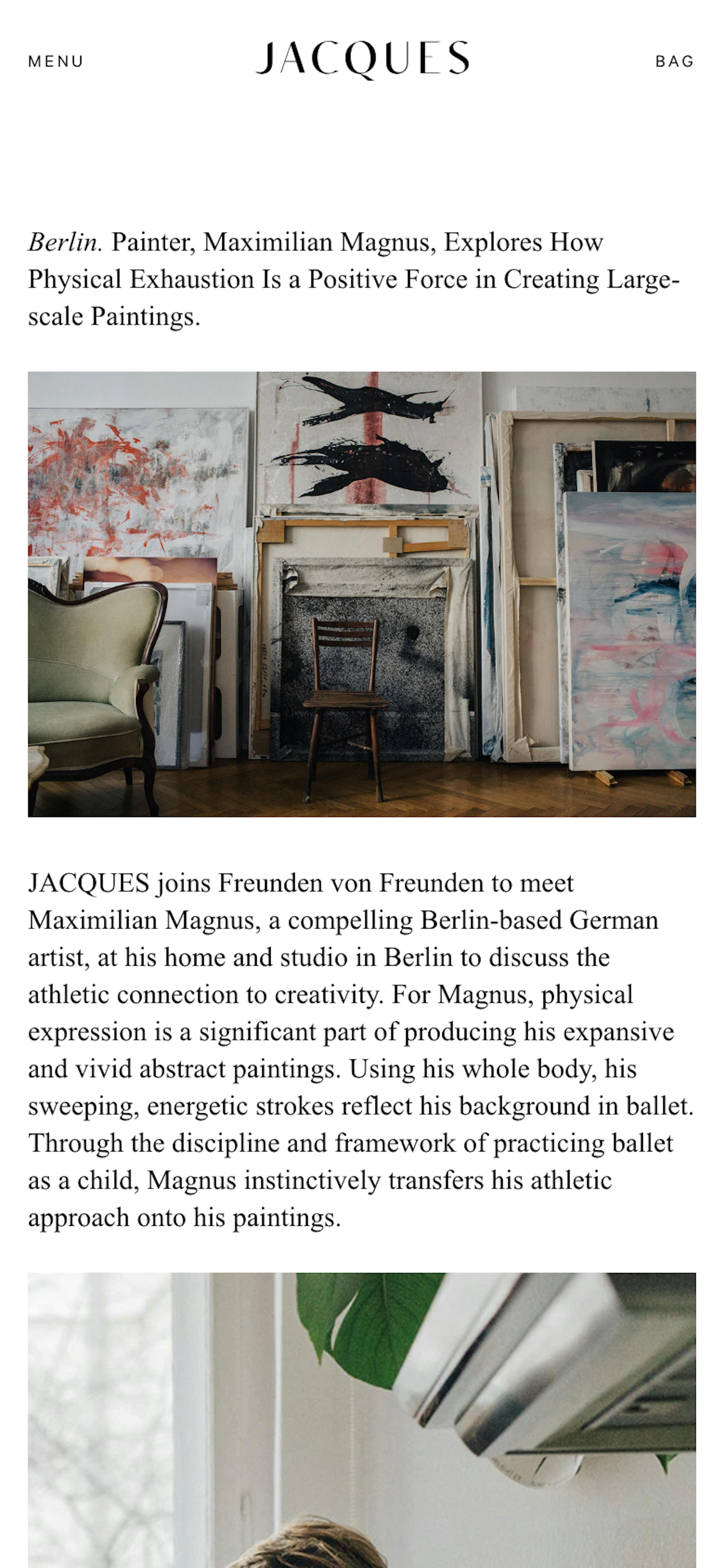 We collaborated with JACQUES on their new website, seeking to strike the right balance between utilitarian e-commerce capabilities and inspirational (and aspirational) editorial content.