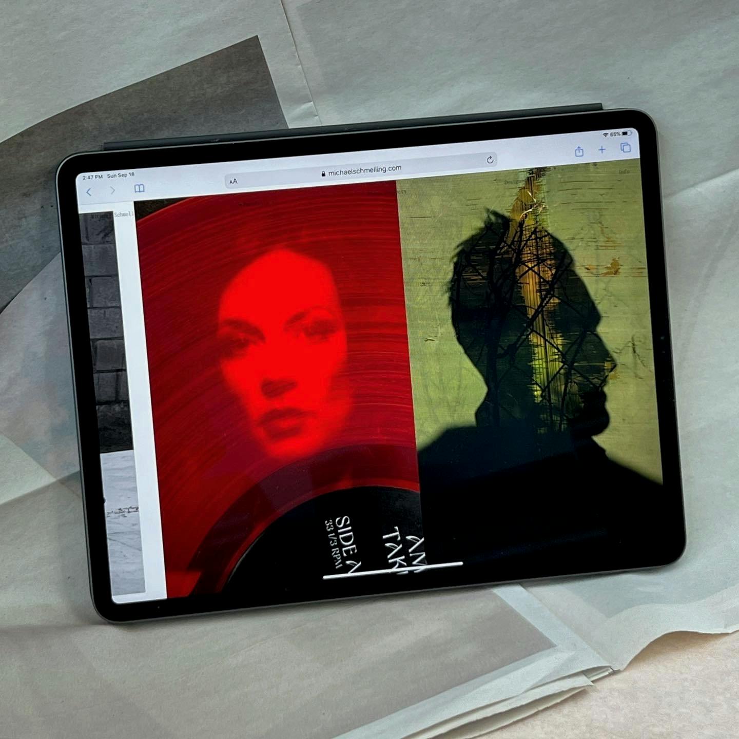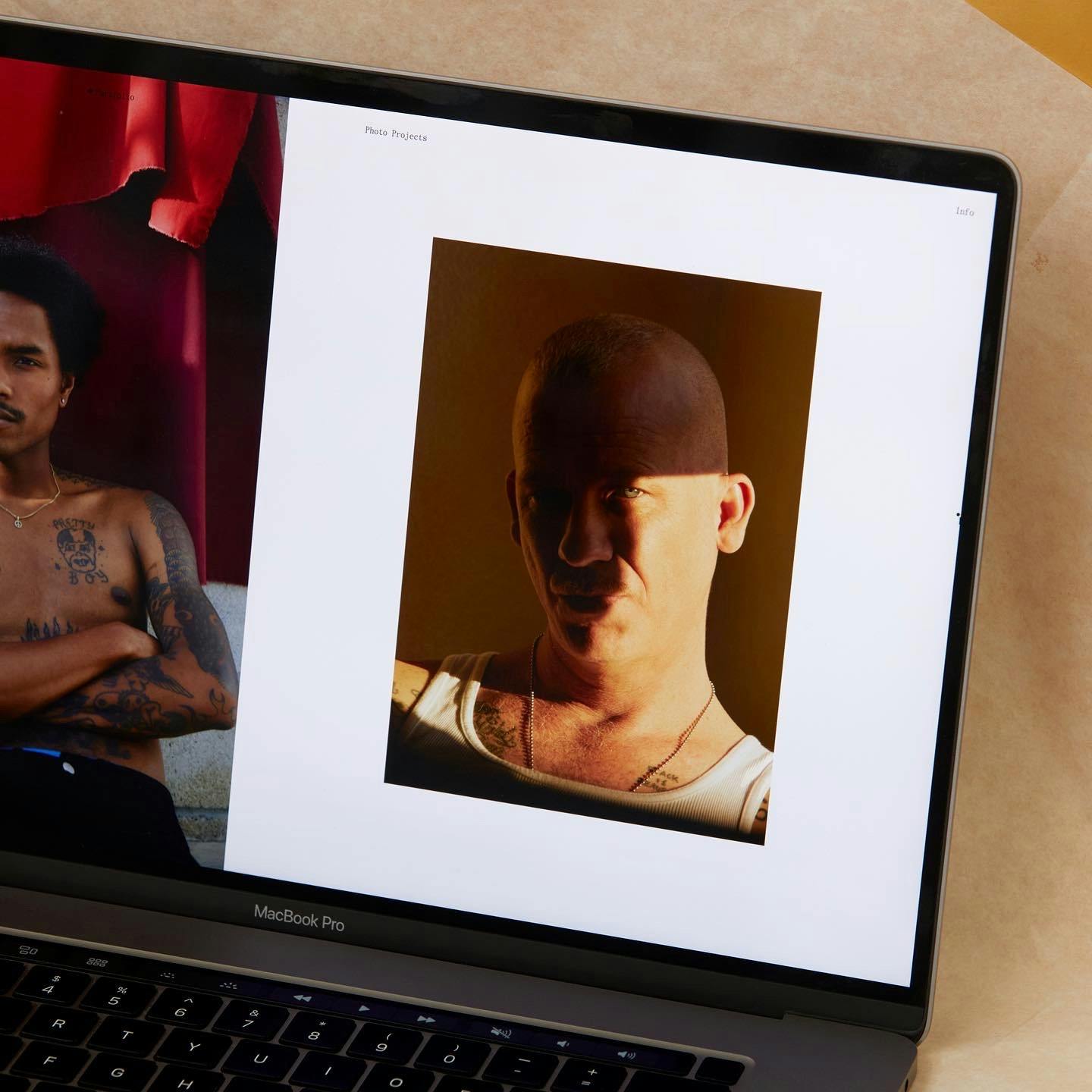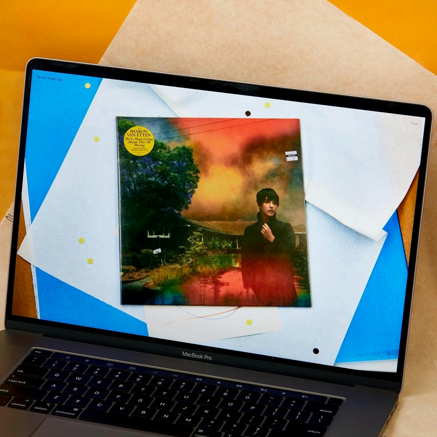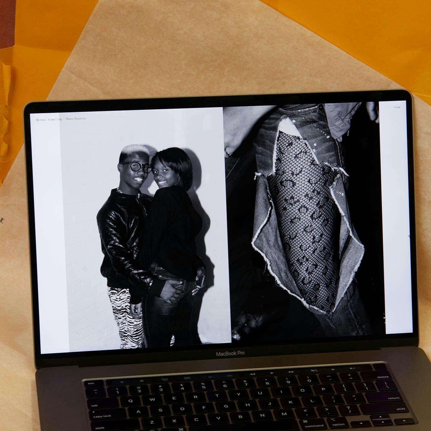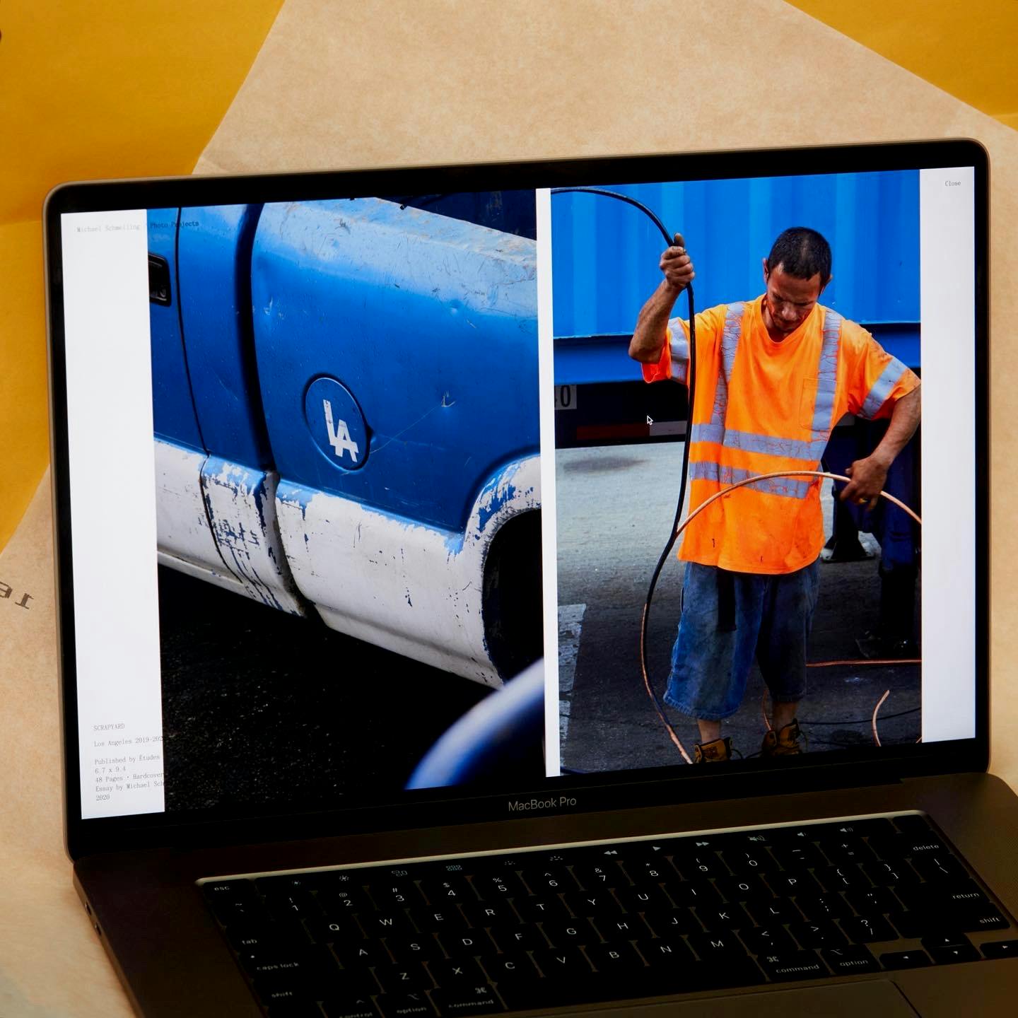 While reviewing Michael’s work, we were drawn to the slightly off, imperfect, messy, and charming way he documents his design work. We asked him to take this same approach to documenting the new website, creating photographs of computers showing books to present on the site — light-hearted, self-referential moment that further highlights Michael’s unique view of the world.