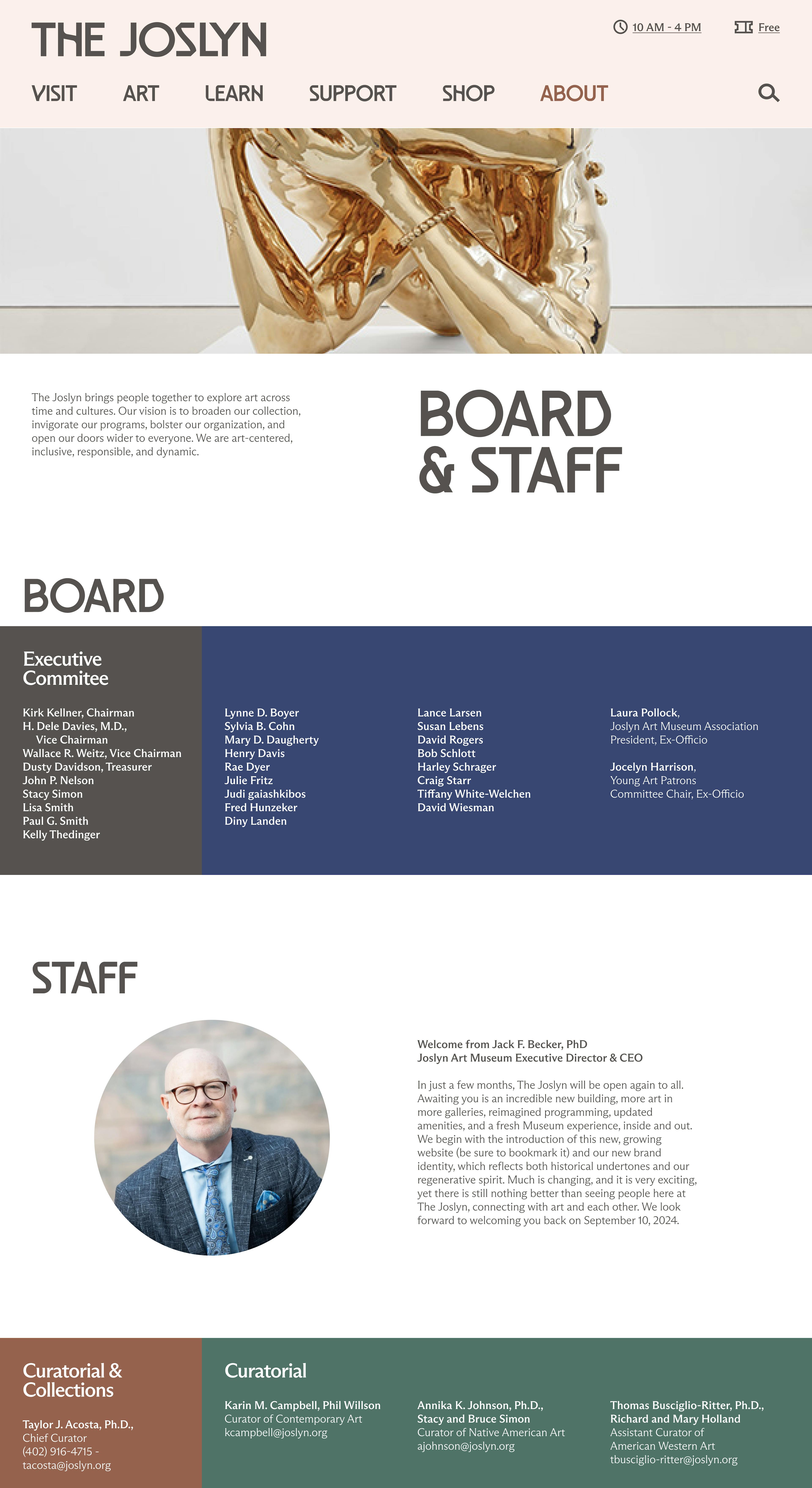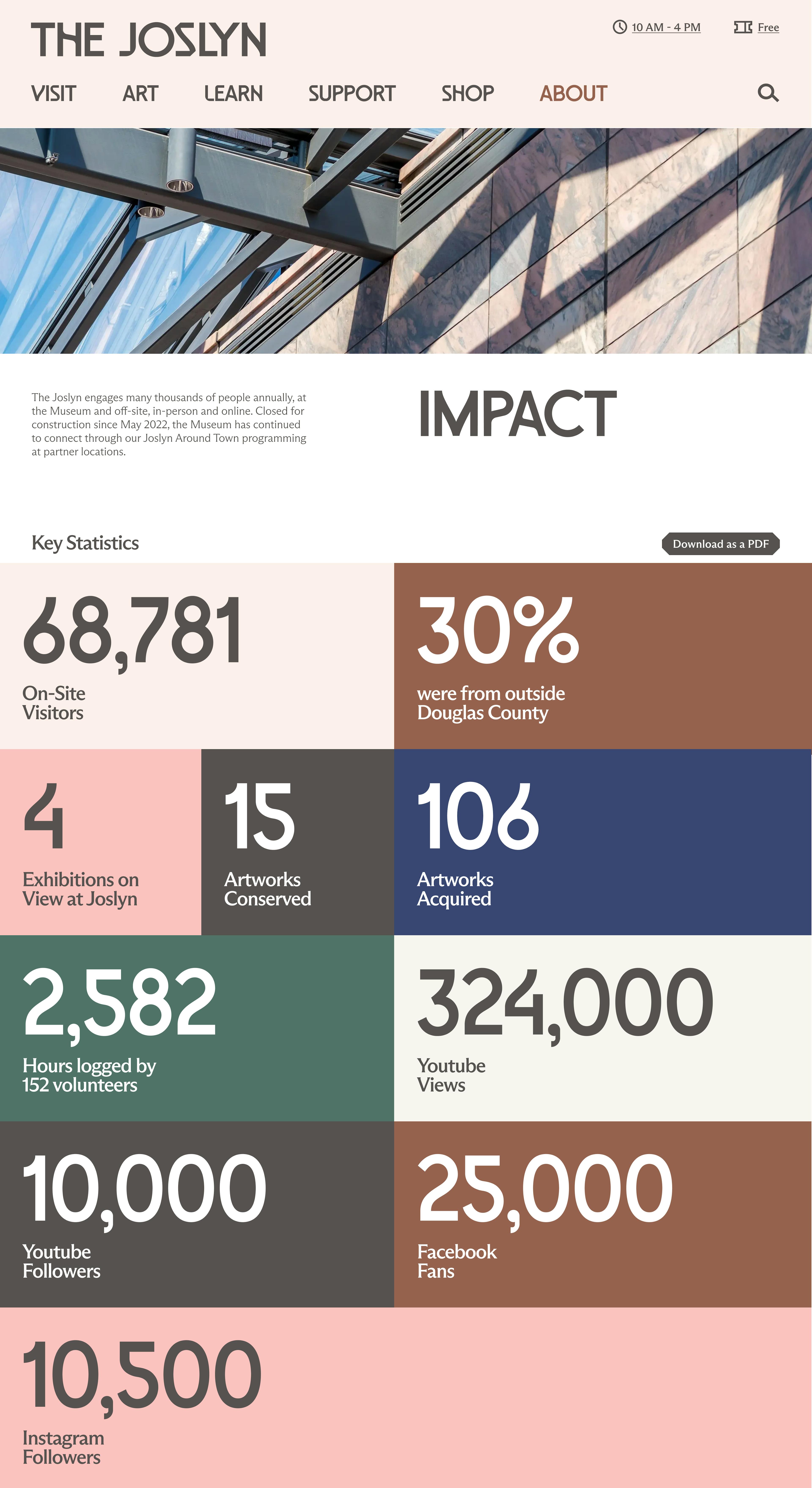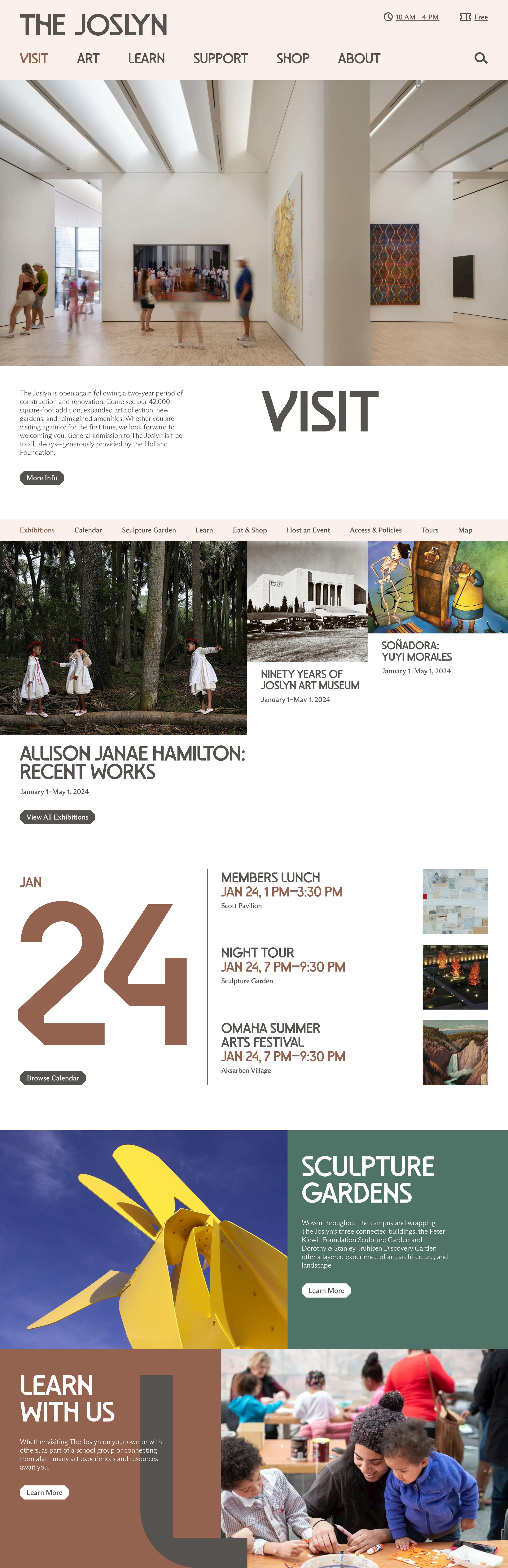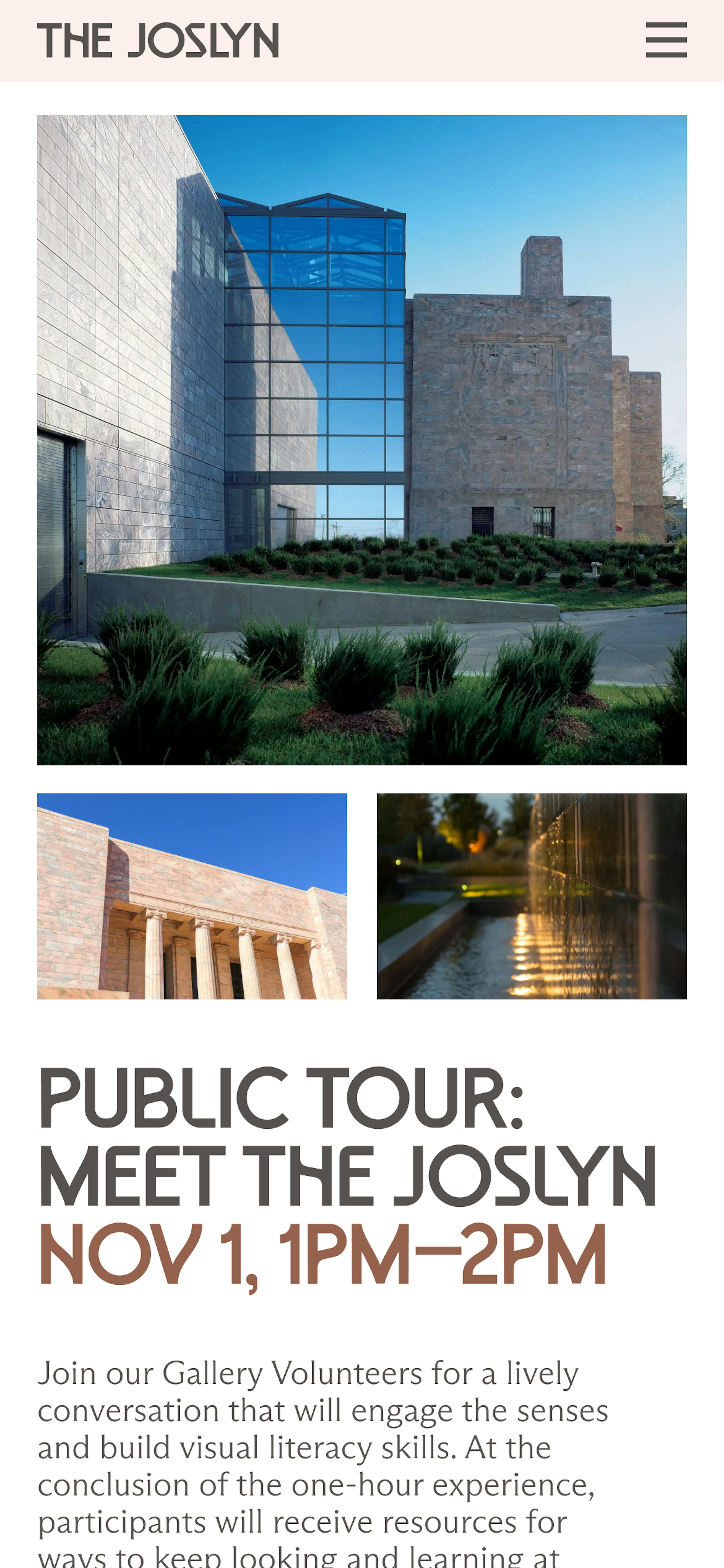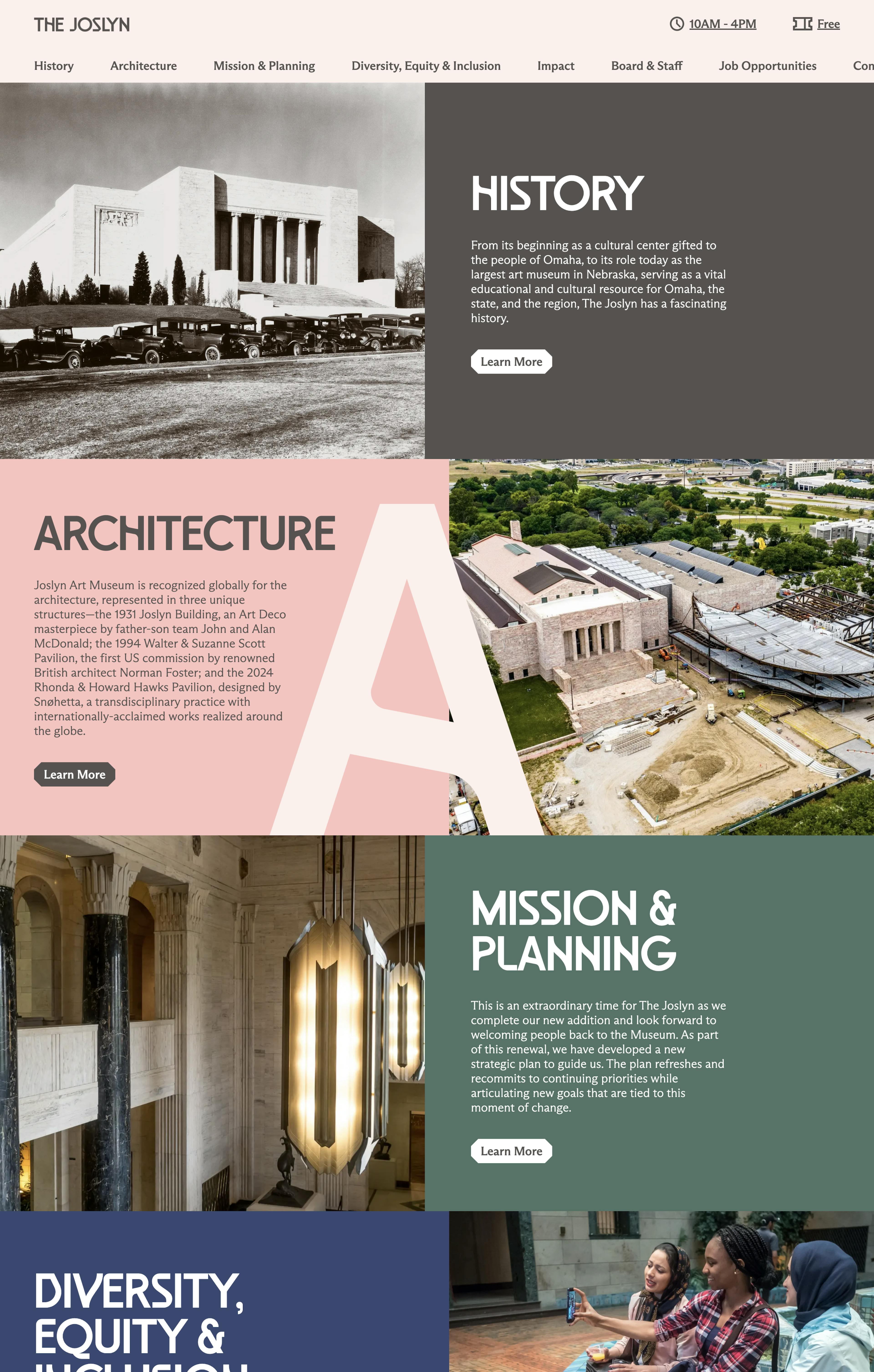 We collaborated with Eddie Opara and his team at Pentagram to create a new website for The Joslyn. The bright and welcoming design conveys a new era for the institution while engaging new and existing audiences. The website also provides online access to selections from the Museum’s impressive collection.