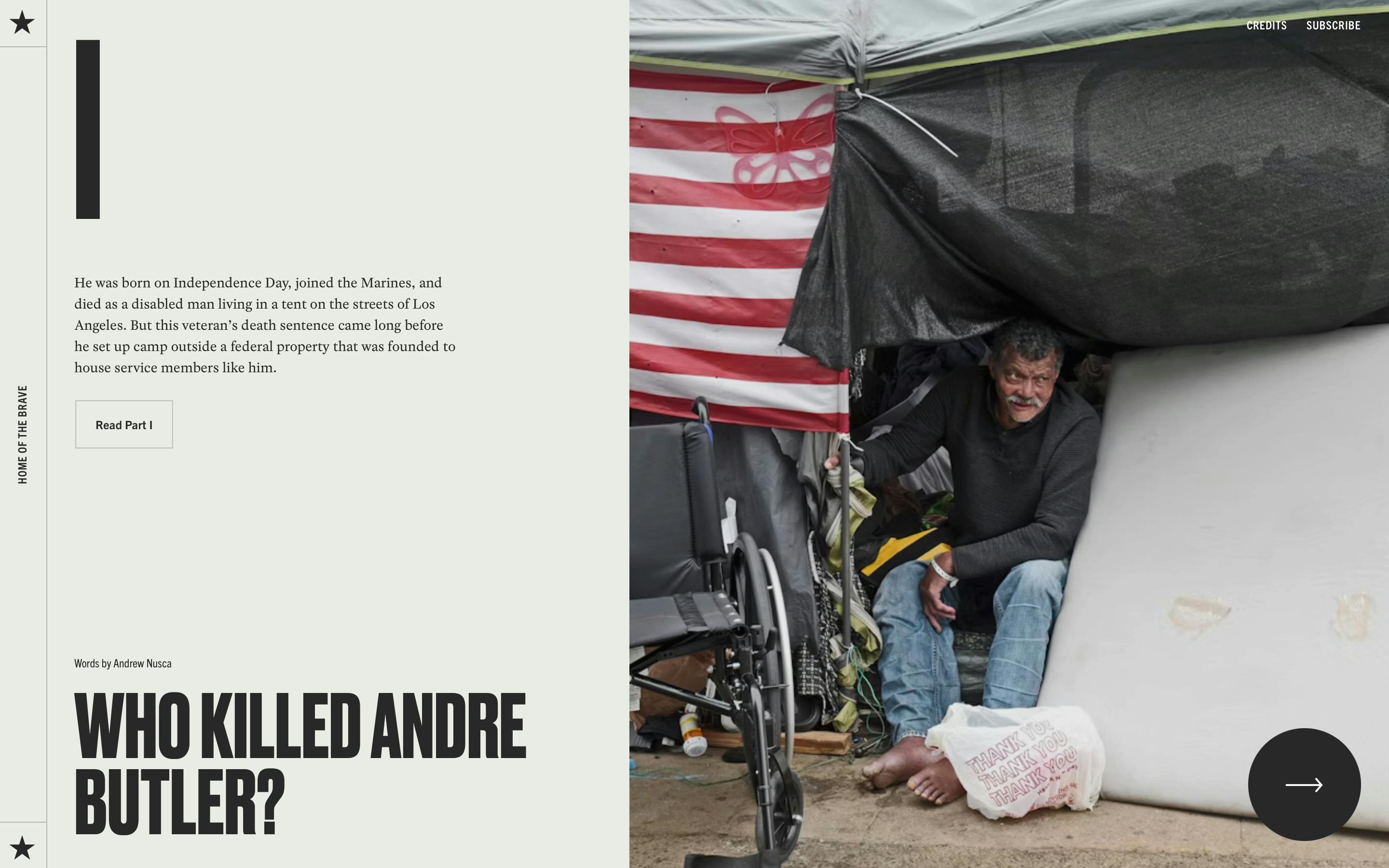 "Home of the Brave" is the story of the West Los Angeles Veterans Affairs (VA), a nearly 400-acre campus donated to the federal government to house and care for disabled veterans. Once an idyllic haven for soldiers returning home, much of the land is now dilapidated or leased out to third parties, including a parking lot company, an oil drilling outfit, and a private high school. Meanwhile, Los Angeles has become the nation’s capital for veteran homelessness, with veterans dying just outside the VA gates.