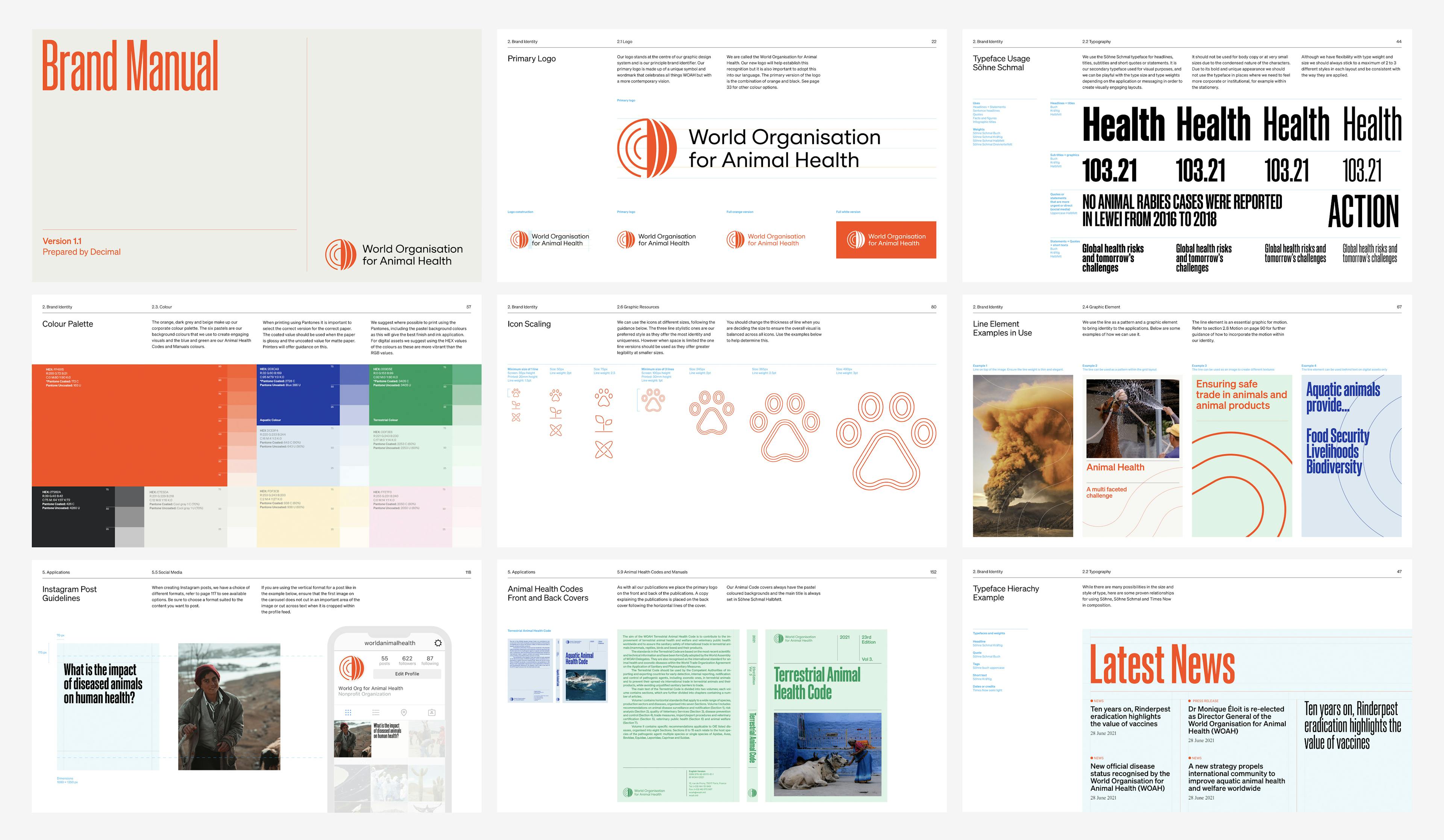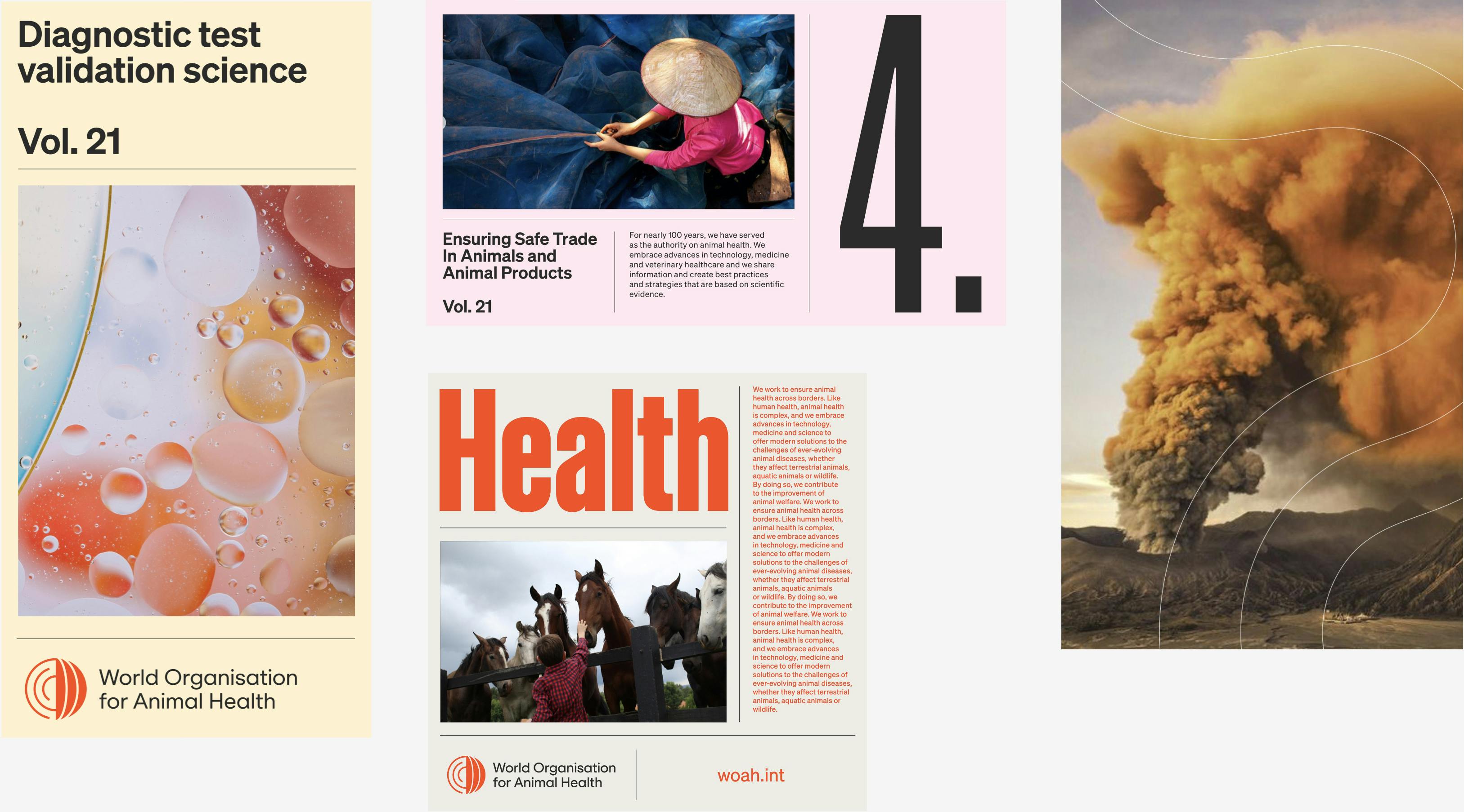 From scientific studies and white papers, to short films, social posts, flags, international codes, and maps, WOAH’s work requires so many applications. We iterated and documented all in a 160 page brand guidelines document which was provided along with templates for each asset.